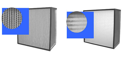 Mini-pleat filter made of high-strength waterproof glass-fiber papers, employs innovative none-separator technology guaranteeing remarkable characteristics of large effective filtration area with low pressure drop, long useful life-time and small installation space.